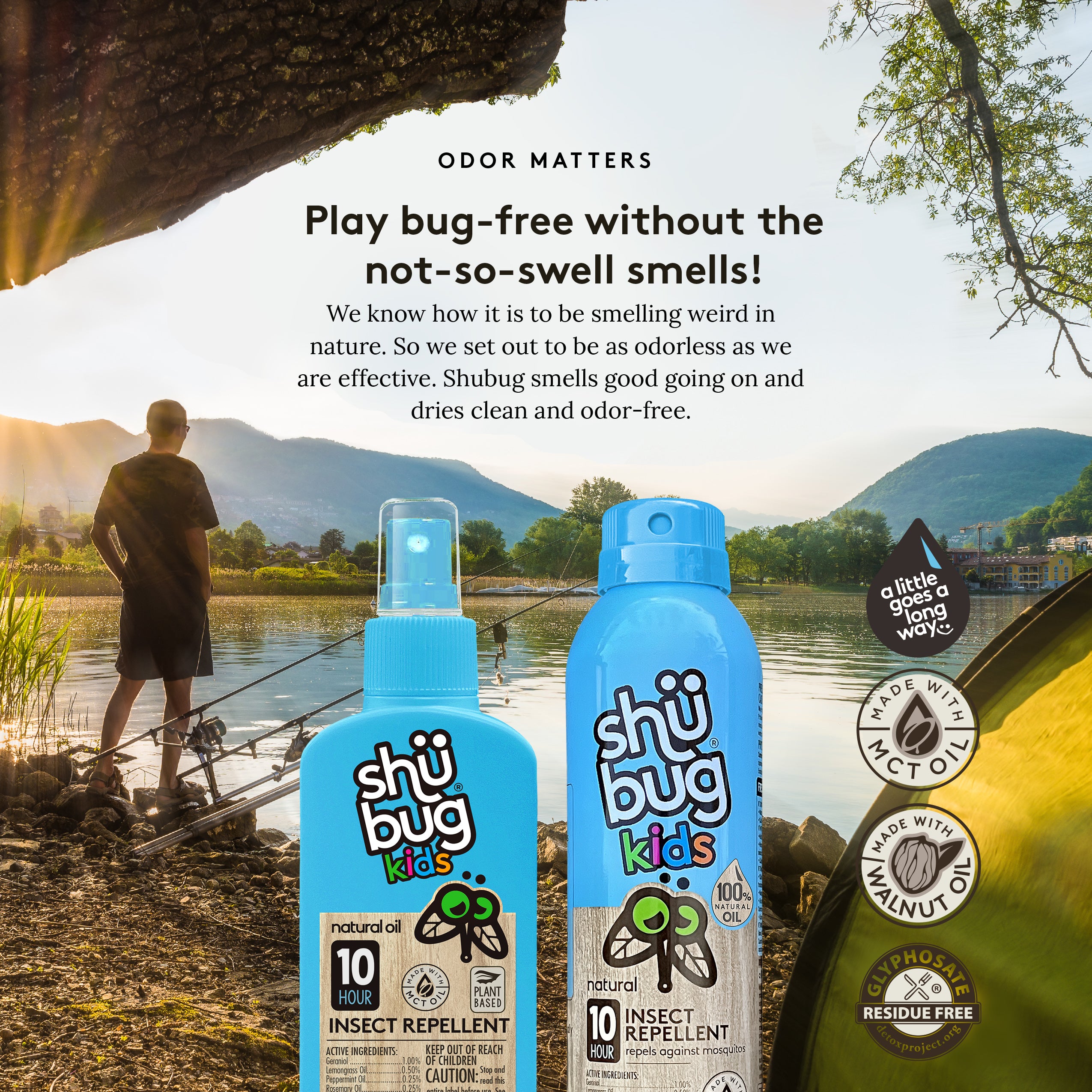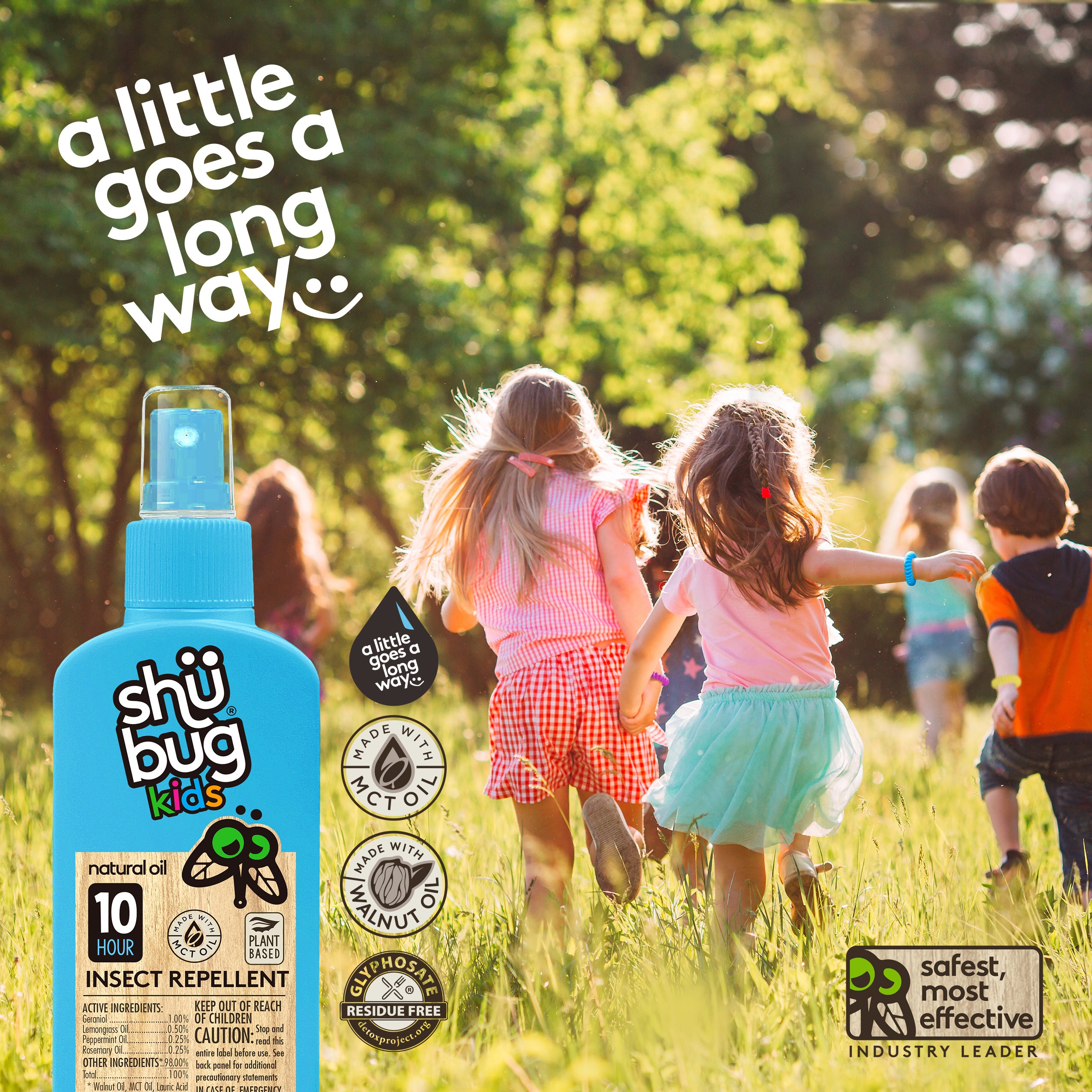 Shübug Kids 4oz Pump Spray Insect Repellent contains all-natural ingredients that offers up to 10-hours of protection from mosquitos and other annoying insects.